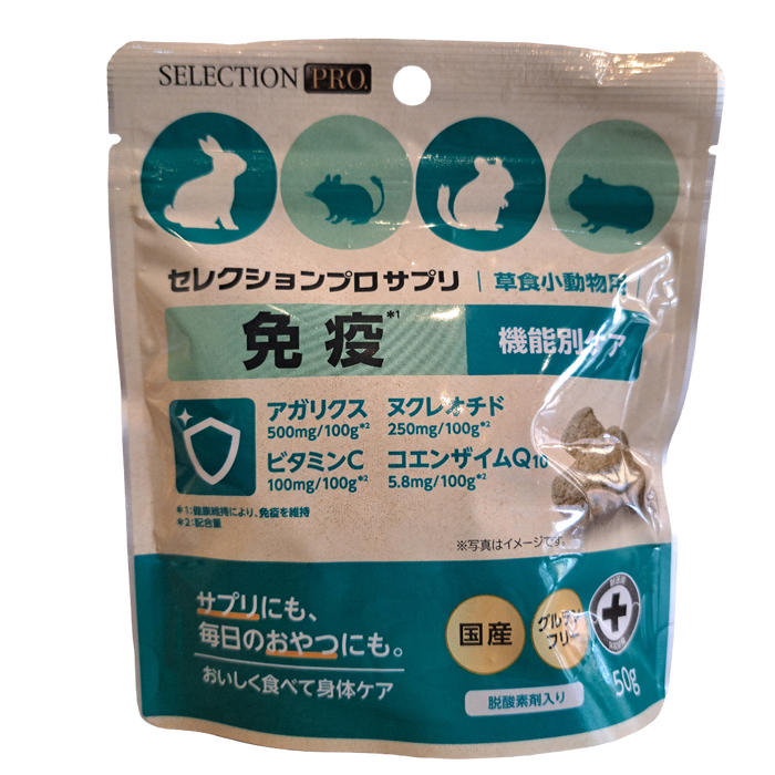 牧草を50%配合し、ヘルシーなおやつとしても与えられるように配慮。